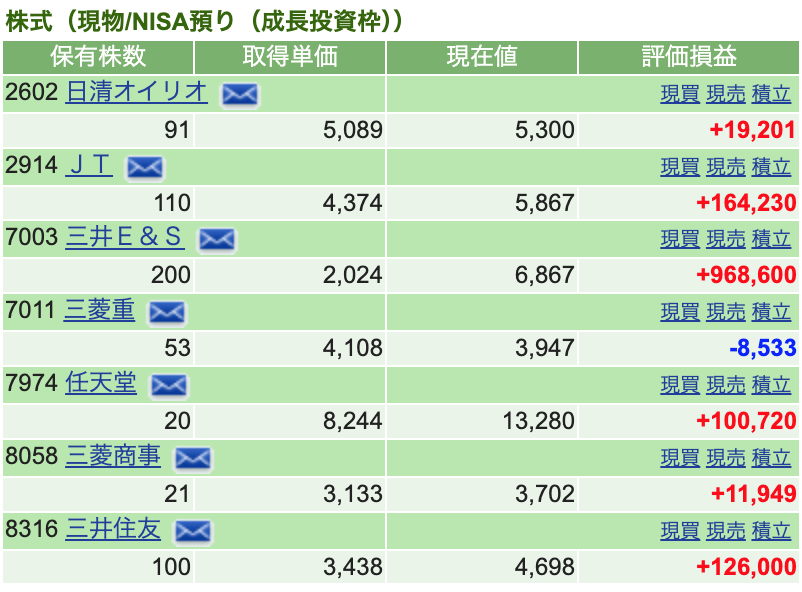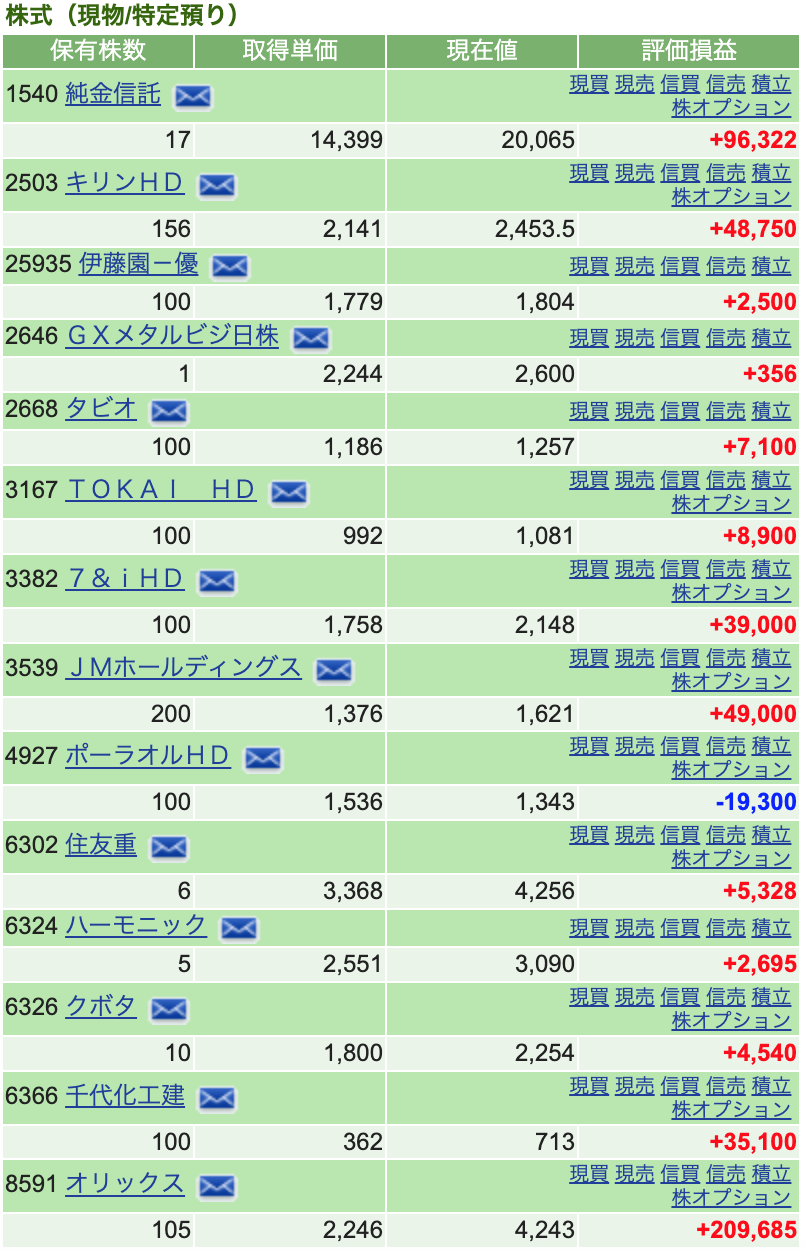 手持ちは日本株メインで、アメリカ株と投資信託が少しって感じの内容です。